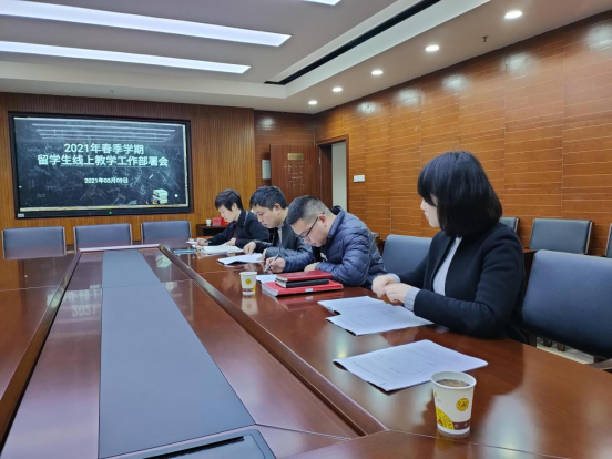 On March 9, 2021, international college held the online teaching deployment meeting for overseas students in the spring semester of 2021 in the conference room on the fifth floor of the administration building, and the directors of the teaching and research section of international college, public foundation department, art college, information college, school of business and trade, and school of economics and management were invited to attend the meeting.