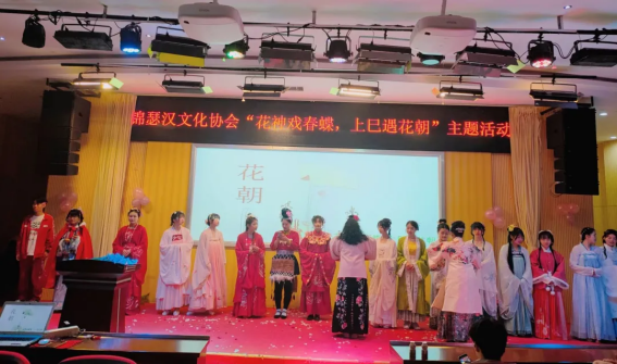 In order to make more students feel the charm of the traditional festival of the Han nationality and can learn more cultural knowledge, all members of Jinse Han Culture Association held the theme activity of "The Flower Spirit Playing with Spring Butterflies and Meeting the Huazhao Section" in the lecture hall on the second floor of the library on April 17, 2021.