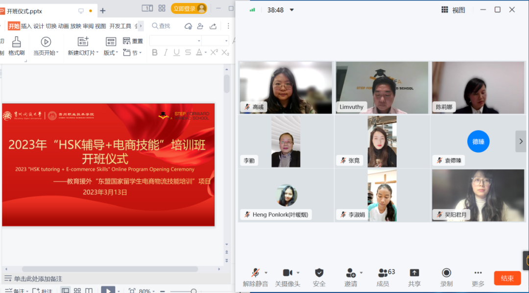 In order to further enhance the exchange and cooperation between our school and ASEAN countries, promote the "Chinese + vocational" education, and help the development of "One Belt and One Road", our school has customized a three-month online training of "HSK tutoring + E-commerce skills" for 50 Cambodian students. At 7 PM on March 13, 2023, Chinese and Cambodian teachers and students met online and held an class opening ceremony.