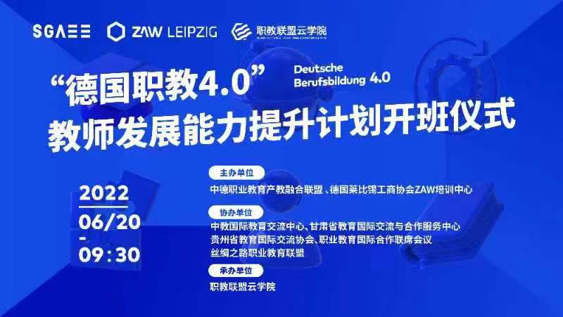 Sponsored by Sino-German vocational education Integration Alliance of industry and education, Leipzig Industry and Commerce Association of Germany ZAW Training center, the Cloud college of vocational Education Alliance hosted the "German vocational Education 4.0" teacher development ability improvement plan "series of quality teacher training opening ceremony and Sino-German online teacher training base cloud awarding ceremony was successfully held in the morning of June 20.