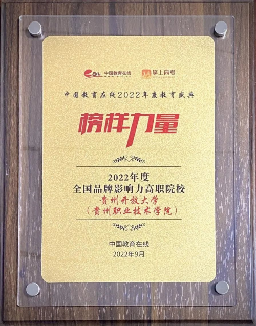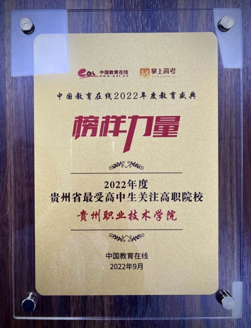 Recently, China Education Online “Model power: 2022 Annual Education Ceremony” award list announced, after the preliminary solicitation, expert review, comprehensive review and other stages, our school stood out from many colleges and universities, won the “National Brand Influential Higher Vocatinal College in 2022”, “The Most concerned Higher Vocational College by high school students in Guizhou Province” honorary titles.
