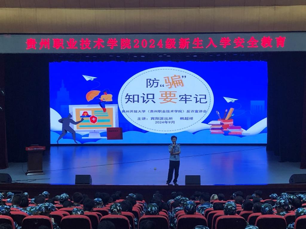 From September 16th to 21st, the Party Committee’s Security Department of Guizhou Vocational Technology Institute, in collaboration with Binyang Police Station and Guanshanhu District Fire Brigade, organized a series of safety education activities for the freshmen of 2024. The activities included safety knowledge lectures, emergency rescue drills, and emergency evacuation drills, aiming to enhance the safety awareness and self-protection abilities of the new students.