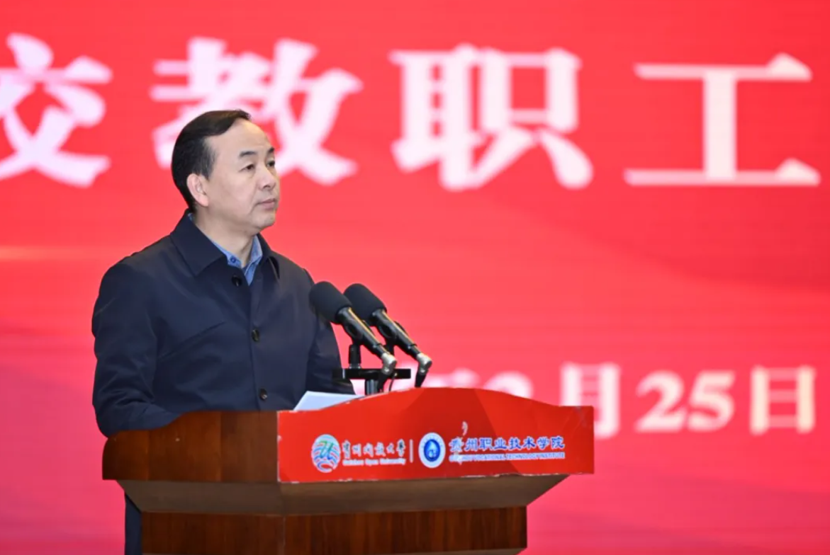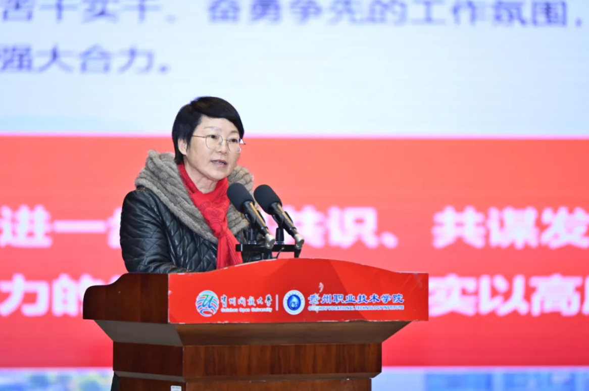 In her concluding speech, CPC Committee Secretary Linghu Caitao fully affirmed the work and achievements of the past year. She analyzed the challenges and opportunities from three perspectives: "clarifying the foundation, taking responsibility to lead changes in action," "observing the broader trends, enhancing awareness to lead future changes," and "implementing practical measures, innovating methods to lead changes in quality and efficiency." With the overarching theme of "working solidly," she set clear requirements for advancing party building to the forefront, made specific arrangements for improving the quality and quantity of open education, enhancing the quality and excellence of vocational education, and expanding the scope of continuing education. She encouraged everyone to emancipate their minds, deepen reforms, seek truth and practicality, work diligently, and uphold a people-oriented approach while cherishing the school as their home. Linghu Caitao emphasized that standing at a new starting point, the entire school must carefully study and grasp the current situation, persist in working solidly and leading the way, strive to seize opportunities in crises and open new paths in changing circumstances, and shoulder the historical responsibility of building a new university that satisfies the people. She called for greater contributions to strengthening Guizhou's distinctive education and building the school into a high-quality new undergraduate university with unique characteristics in Guizhou and influence nationwide.