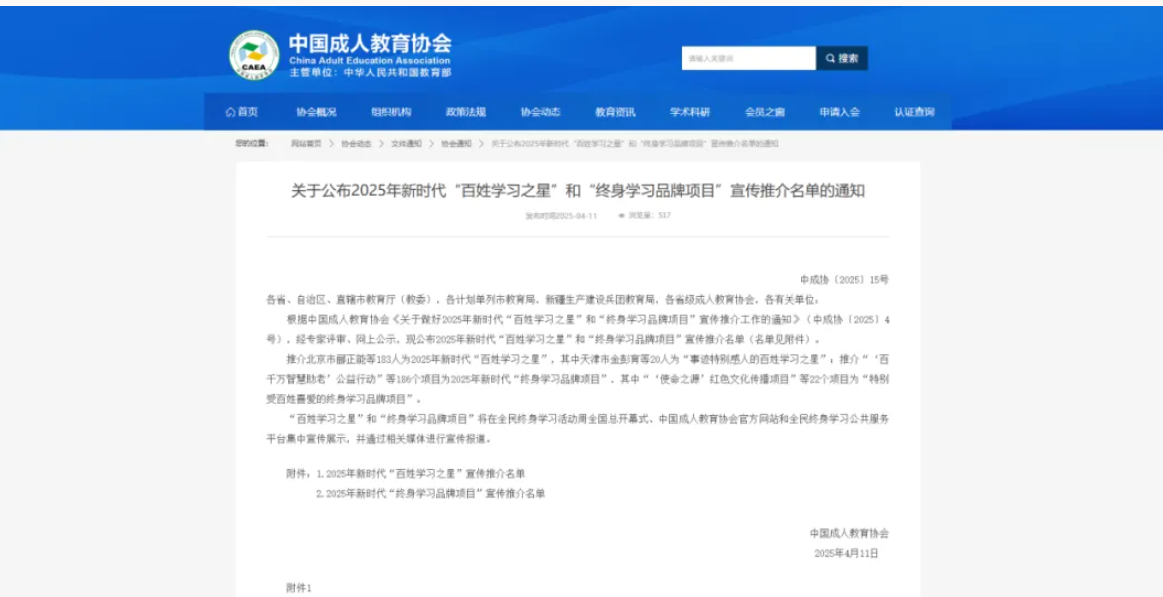 2. 2025 National "Lifelong Learning Brand Projects" (Including "Nationally Beloved" Category)