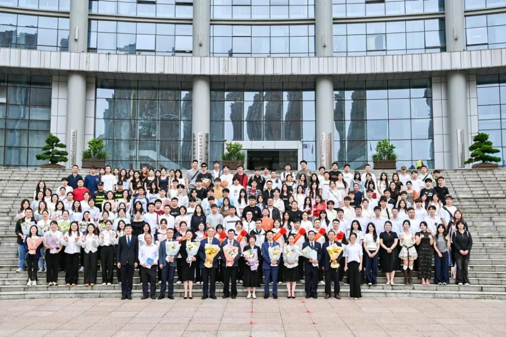 Before the ceremony, a theme video “The First Dream” was played, and the School of Art and Design performed a dance “Ice Flower”. Teachers and students sang “The Road Where Phoenix Flowers Bloom” together. The ceremony concluded with a chorus of “Farewell”, and all the graduates and teachers gathered for a group photo, wishing each other a bright future.