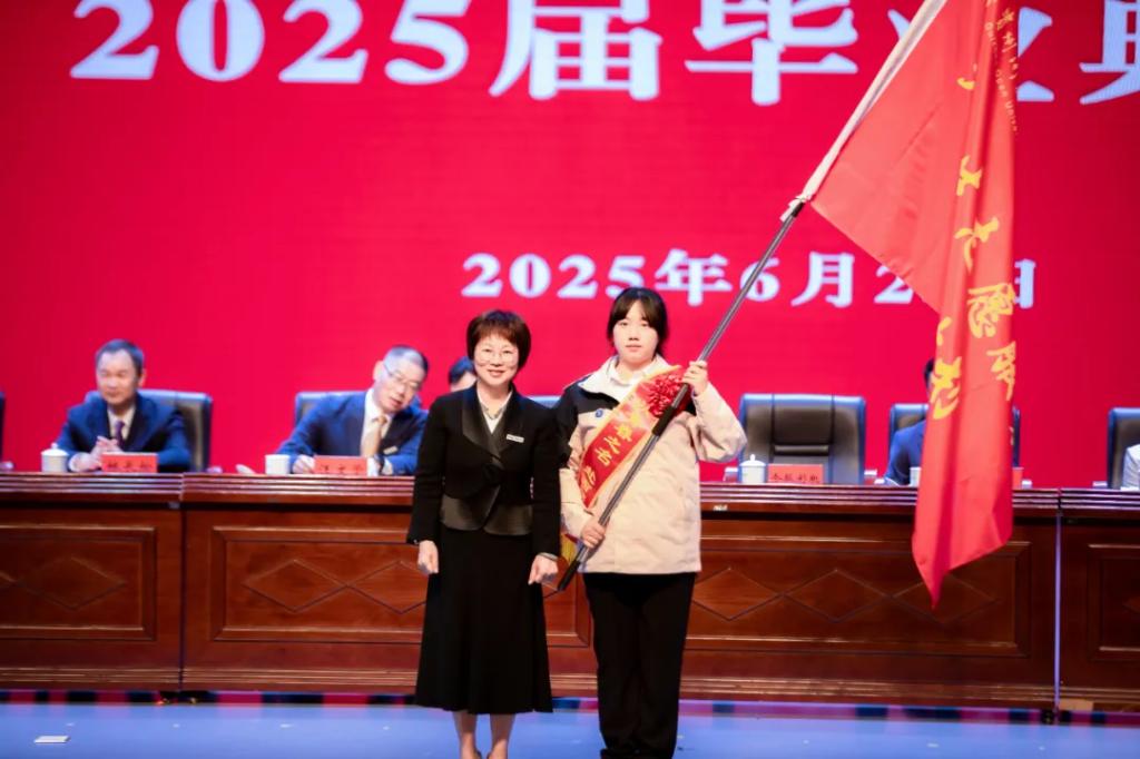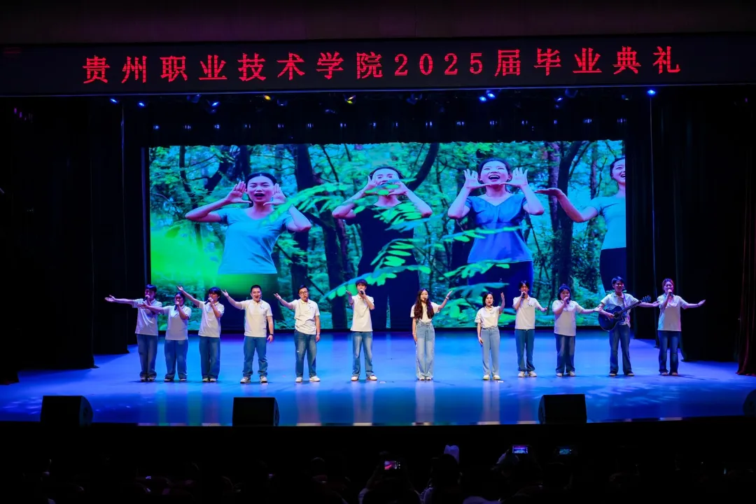 The ceremony began with the national anthem. Vice President Lin Changsong read out the graduation decision, and Deputy Secretary of the Party Committee Zhang Renjun read out the decision to honor outstanding graduates. University leaders presented graduation certificates and vocational skill certificates to student representatives and awarded prizes to outstanding graduates.