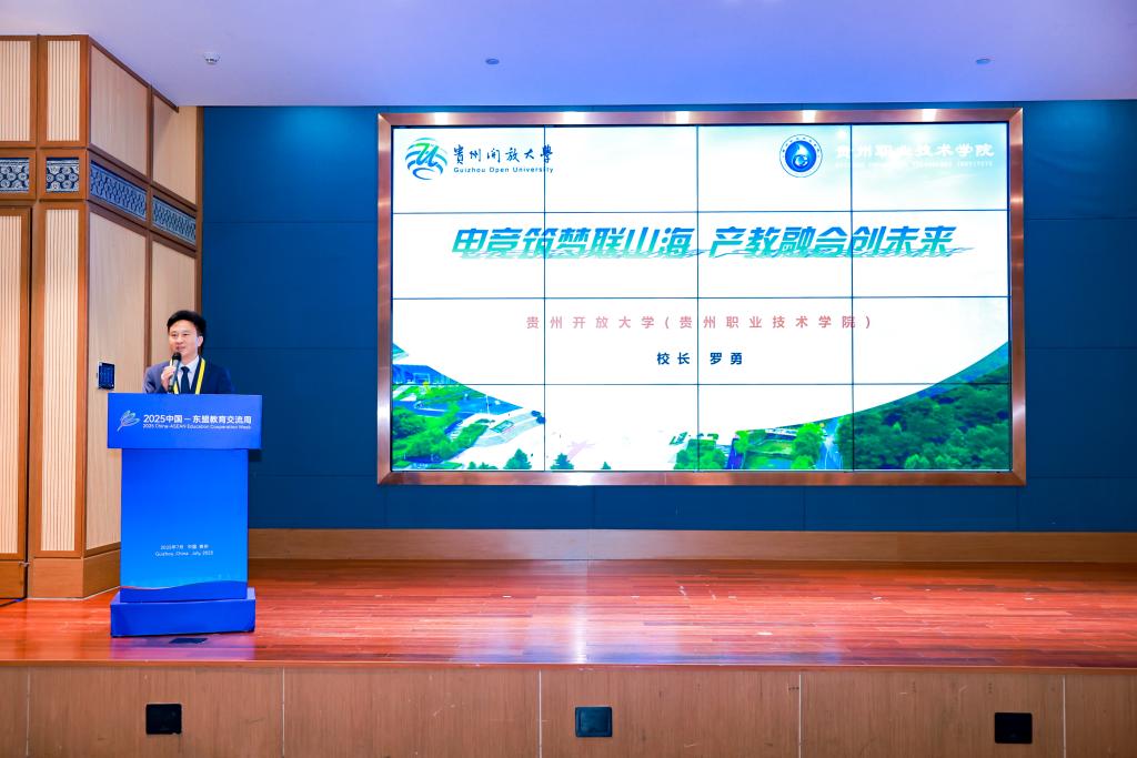 On the afternoon of July 26th, the theme conference on the integration of e-sports industry and education of the China-ASEAN Education Exchange Week was held in Gui’an New Area. The conference was hosted by the Secretariat of the Exchange Week Organizing Committee and organized by Guizhou Open University (Guizhou Vocational Technology Institute). Representatives from governments, universities and enterprises of China, South Korea, Cambodia and Thailand attended the conference. Jiang Shan, the chairperson of the Education Trade Union of Guizhou Province, and PHOUMIKA KONG, a representative of the Ministry of Education of Cambodia, delivered speeches. President Luo Yong of Guizhou Open University and other university leaders were present.