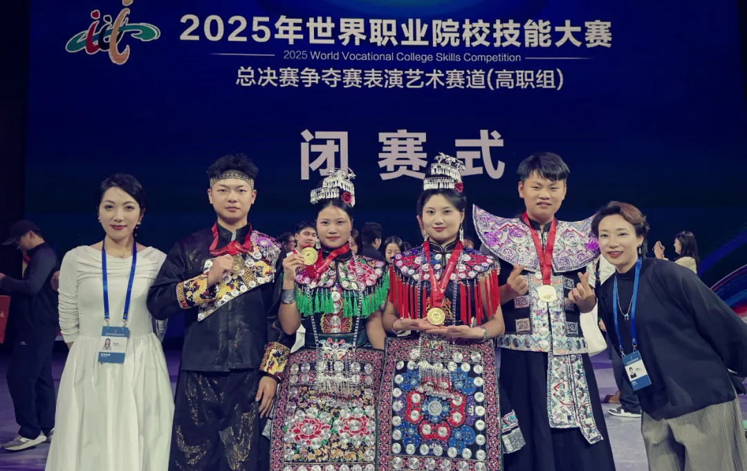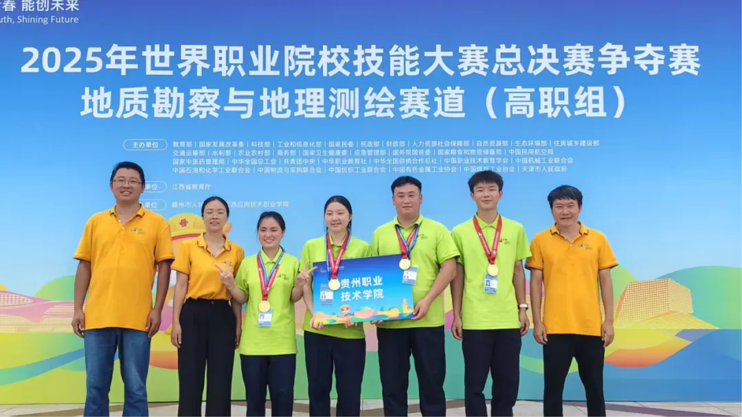 In the gold medal category: In the Geology Survey and Geomatics event (Higher Vocational Group), four students, Guan Heng, Liang Chacha, Jiang Juan, and Yang Dianwen, guided by Liu Guanhu and Wang Zhen from the School of Architectural Engineering, won the national gold medal. In the Performing Arts event (Higher Vocational Group), four students, Wang Rui, Xiao Chengping, Qin Yunxiang, and Zhou Enzhong, guided by Liang Yuemei and Tao Yidan from the School of Art and Design, also won the national gold medal.